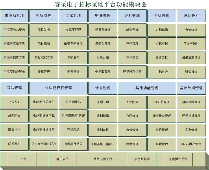 1、長沙瑞財電子招標采購系統是一款針對各行業企業單位開發的電子招投標系統平臺,系統以《電子招標投標辦法》依據,遵循《電子招標投標辦法技術規范》,覆蓋電子招標投標全過程,包括計劃管理、項目管理、供應商管理、招標管理、財務管理、專家管理、評標管理、定標管理、監督管理、檔案管理、合同管理等。系統實現采購業務全協同,提高流程運轉速度,能有效降低招標采購成本,提升招標采購效率,使招標采購過程更規范、更專業、更透明,達到招標采購的“公平、公開、公正”的目的,為招標人和供應 商提供“專業、全面、可靠、安全、信任的”招標采購解決方案 2、系統以實現“陽光采購”為核心,對采購業務進行打破公司、部門壁壘,減少中間環節,提高流程運轉速度,在各單位、各部門、崗位之間實現數據共享、采購協同。實現供應商共享、專家共享、價格共享、商品庫信息共享;實現需求協同、業務協同、管理協同、供需協同,將成為企業提高采購水平、提升工作效率,節約采購成本的重要利器。 |